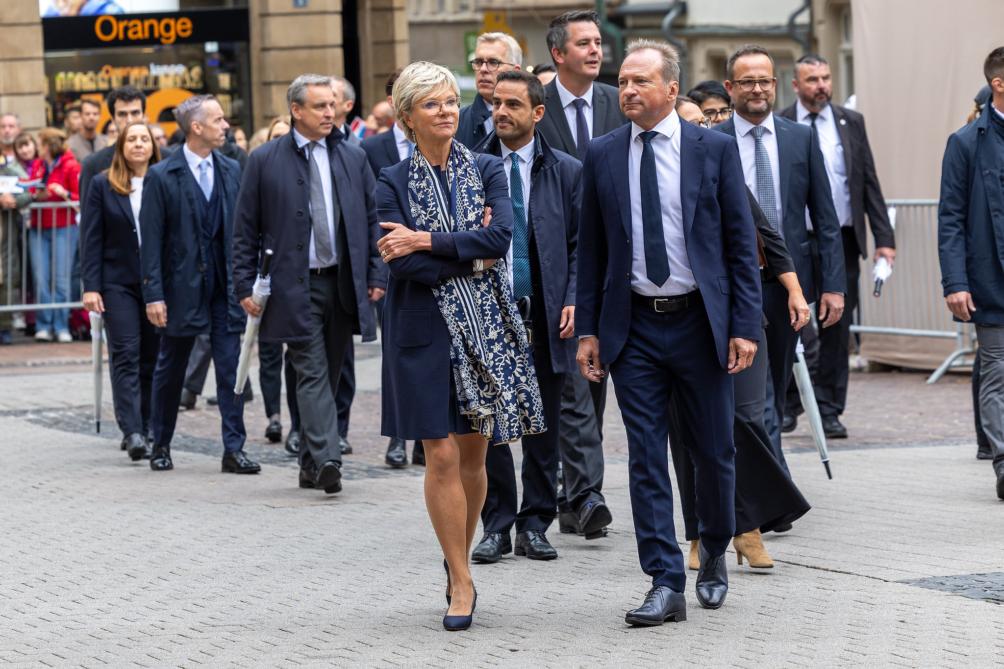 Bei seiner Ankunft in Luxemburg wird Seine Heiligkeit Papst Franziskus von Ihren Königlichen Hoheiten, dem Großherzog und der Großherzogin, in Begleitung von Premierminister Luc Frieden, empfangen. Nach dem Abspielen der Nationalhymnen werden die offiziellen Delegationen vorgestellt.